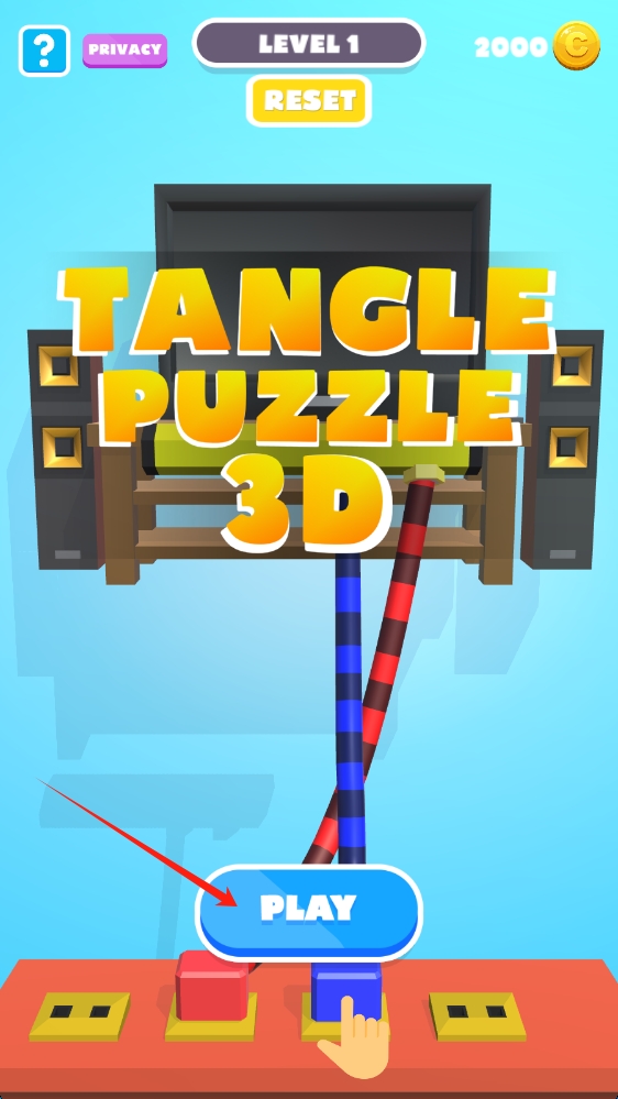1、在Tangle-Puzzle-3D界面,点击PLAY,开启3D缠绕谜题挑战,点击按钮开始游戏。