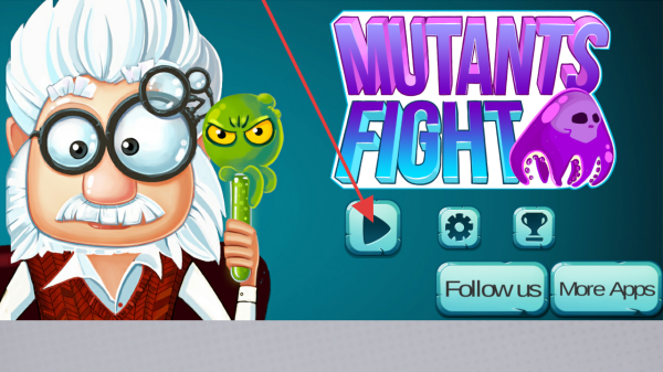 1、进入游戏主界面,点击带有红色箭头指向的播放按钮,即可开始MUTANTS FIGHT游戏。