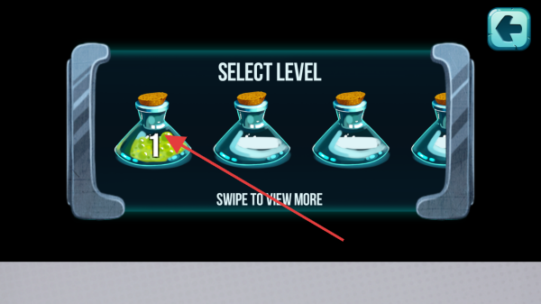 2、在关卡选择界面,上方显示SELECT LEVEL,点击标有1的绿色试剂瓶,即可进入第一关。