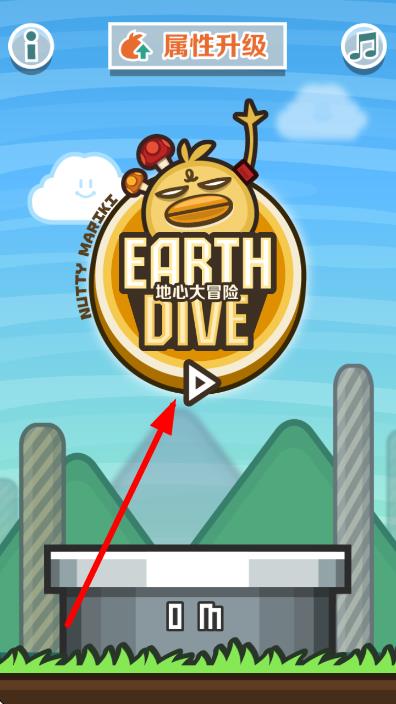 1、点击游戏主界面中间的播放按钮,开始地心大冒险,可先查看属性升级提升角色能力再挑战。