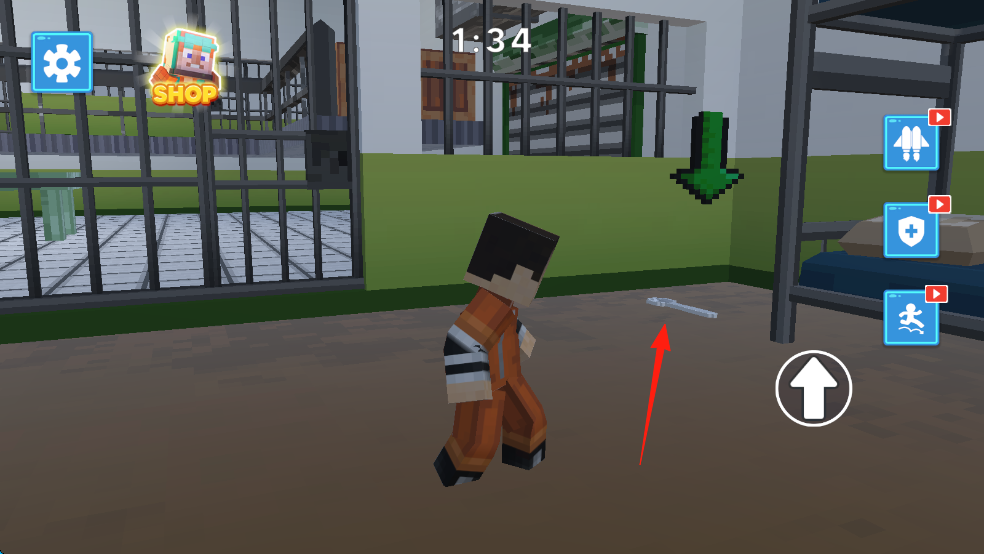 1、进入游戏在牢房,根据箭头指示拾取扳手,然后按绿色箭头指引,探索房间,准备越狱工具。