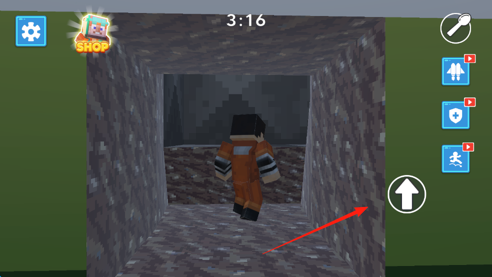 3、在通道内移动,按箭头方向,挖掘、探索,避开危险,向出口前进,完成越狱,需留意时间,合理利用道具。
