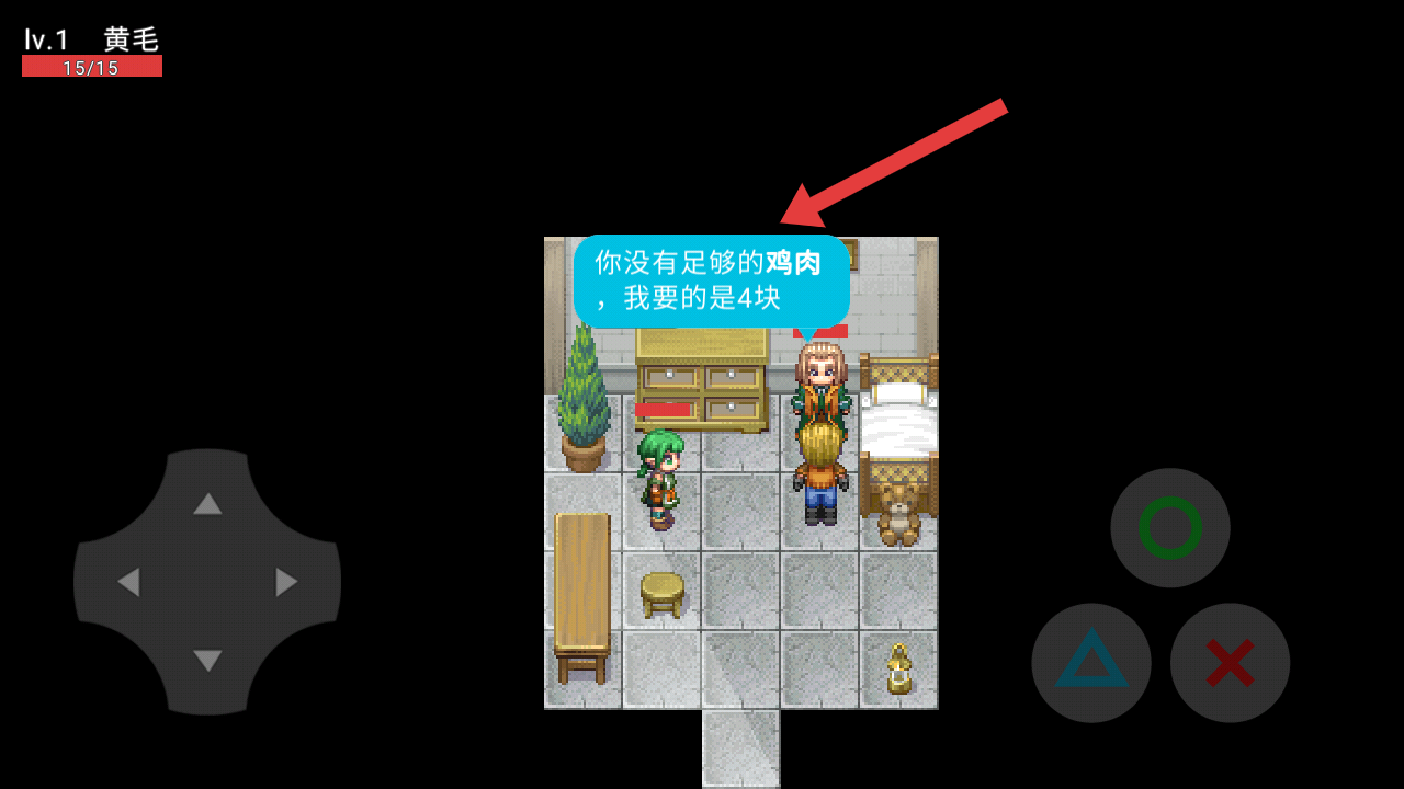 1、与村长NPC对话时,留意其需求需要收集4块鸡肉,来证明自己的实力,明确任务的目标。