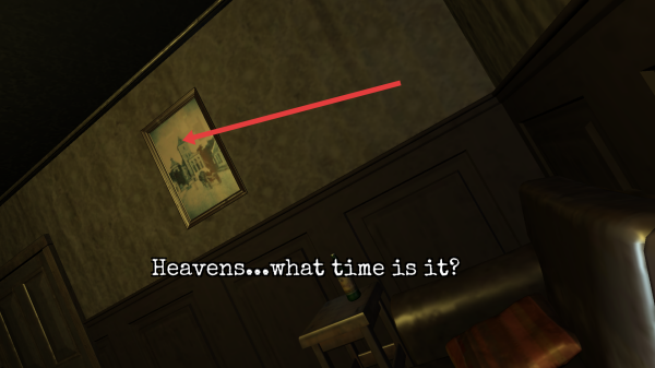 1、在初始的昏暗房间里观察画框、物品,收集可互动线索如桌上的酒瓶,留意文字提示推进剧情发展。