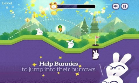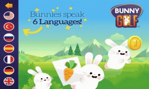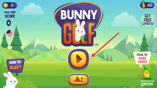 1、点击黄色播放键,进入Bunny Golf,开启兔子高尔夫趣味挑战,准备在卡通球场击球进洞。