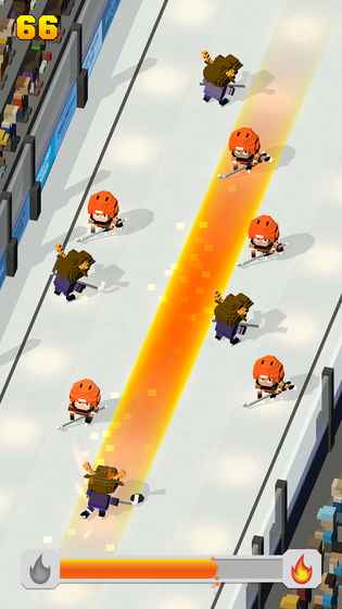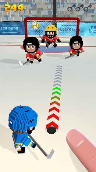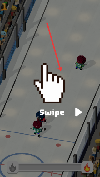 2、游戏里跟着Swipe指引滑动操作,控制冰球角色带球突破,灵活闪避敌方球员阻拦,向球门推进。