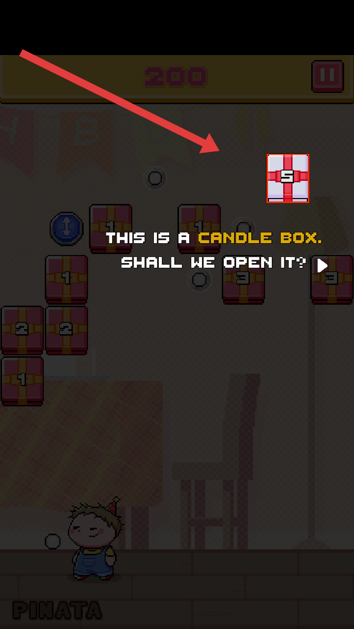 3、当屏幕出现这是一个蜡烛盒,我们打开它好吗提示时,点击箭头指向的特殊礼盒,选择开启。