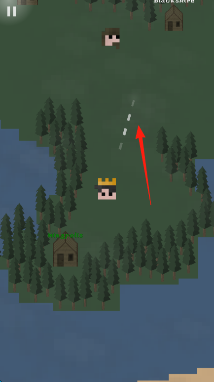 1、控制戴皇冠角色,沿地图虚线指引,在森林、水域场景移动,前往目标地点。