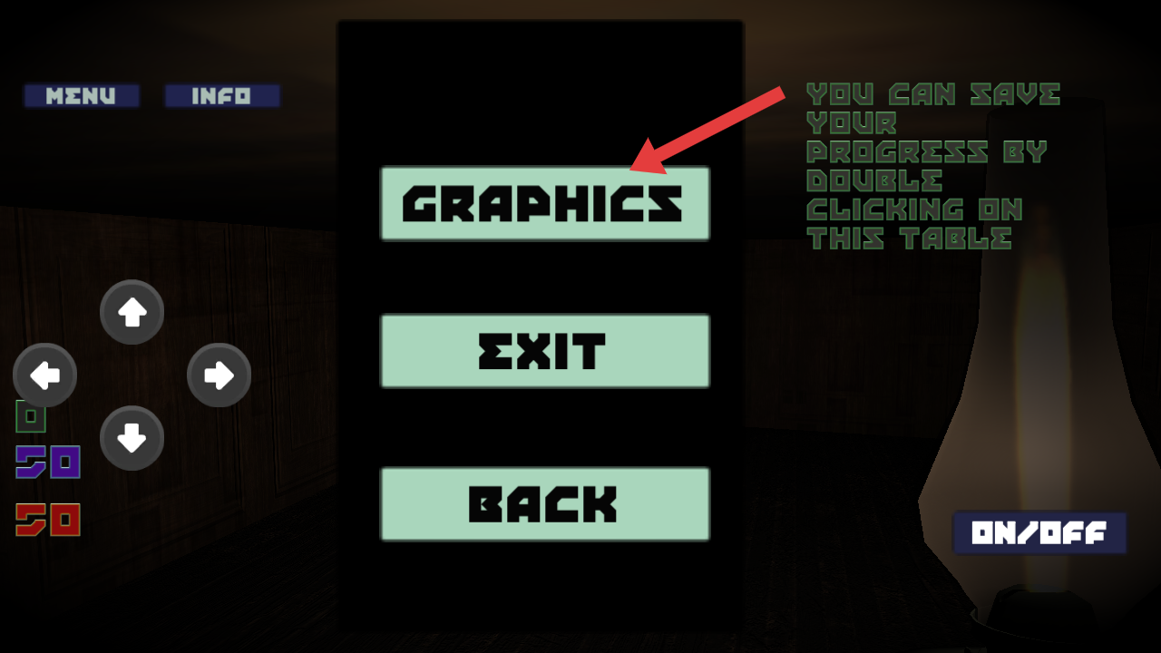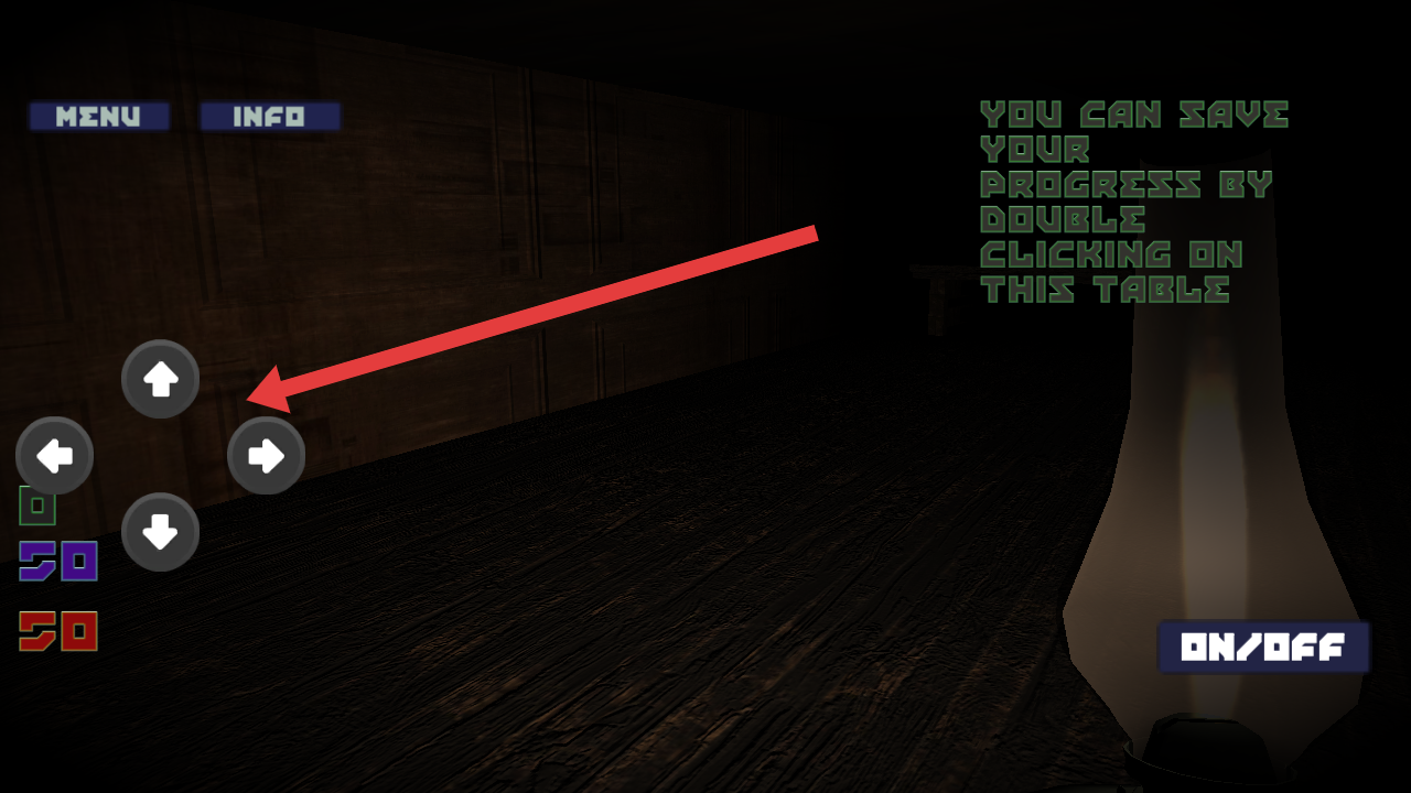 3、在游戏中通过左侧方向按键来操控角色移动,探索该场景,不要发出声响,需要小心怪物的出现。