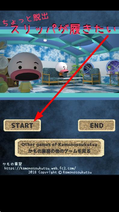 1、点击START按钮,开启ちょっと脱出 スリッパが履きたい的游戏,进入房间场景,帮助角色找拖鞋。