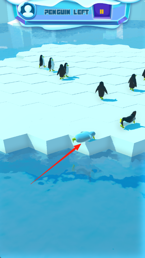 3、如果浅色企鹅被推至冰缝,那就会掉到水底,就相当于闯关失败了,所以要保护好自己不要掉到水下。