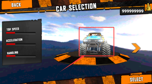 2、在车库界面浏览并挑选心仪的改装卡车,每辆车型都具有独特性能参数。