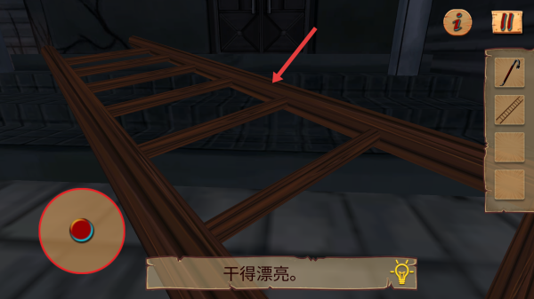 1、根据提示要找到并收集撬杆,移动角色到场景的撬杆处,靠近点击拾取梯子,放入道具栏。