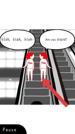 3、在坐手扶梯的时候,画面的角色比较赶时间,由于与朋友聊天聊的比较入迷,需要及时进行让位。