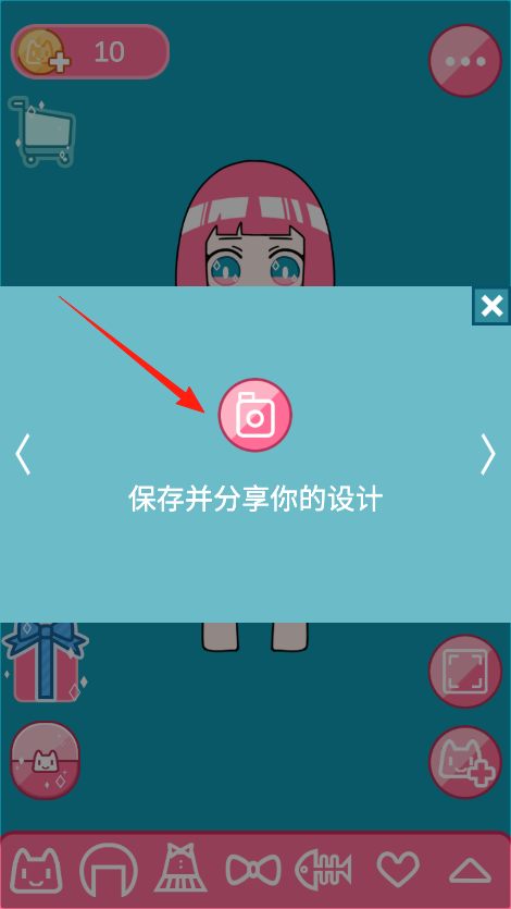 1、点粉色相机按钮就能保存你设计的角色,系统会自动把作品存到相册里,保存成功后会奖励10个金币,攒够数量可以去商店买新装饰品,记得经常备份你的创意哦。