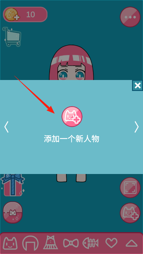 2、点带加号的猫咪图标能创建新角色,左右箭头可以切换不同风格的基础模板,每个新角色都会继承你现有的金币数量,不用担心要重新攒钱买配件。