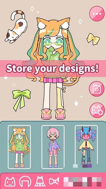 1、设计角色搭配服饰:创建动漫风格角色,从数百种礼服、衬衫、发型、帽子等中挑选搭配,打造心仪的时尚造型,形象均可设计,充分发挥创意,塑造独特的角色外观。