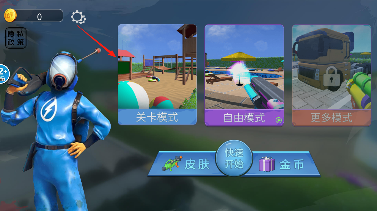 1、点击关卡模式可以挑战游乐场的清洗任务,每个关卡都有不同的脏污程度要处理,自由模式里能随意冲洗泳池边的物品,不过想解锁卡车场景的更多模式得先攒金币升级才行。