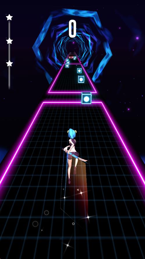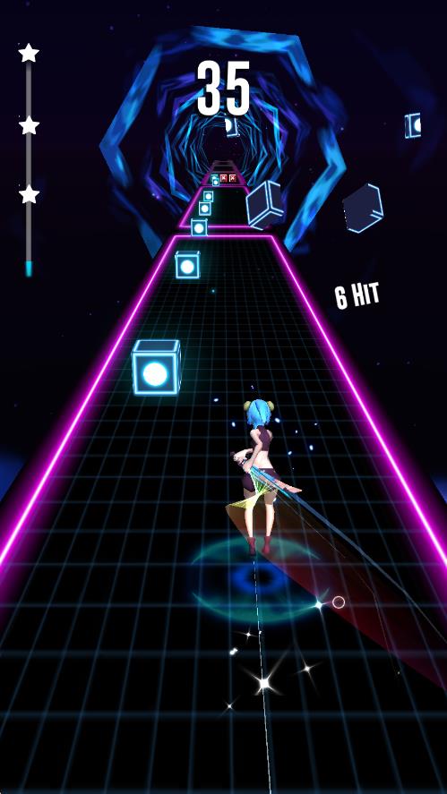 2、在音乐播放过程中,当方块移动至指定区域时,滑动屏幕完成精准斩击,积累连击提升得分。