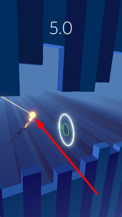 2、飞行中,控制光球瞄准绿色光环区域,精准撞击,利用“5.0”等数值提示,调整飞行轨迹,持续向前推进。