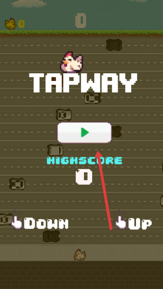 1、点击主界面中的绿色播放按钮,开启Tapway游戏,操控小鸡挑战过马路,躲避车辆。