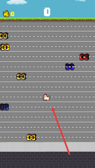 2、在游戏中通过点击屏幕操控小鸡在车道间移动,避开各类行驶车辆,争取安全通过,积累分数。