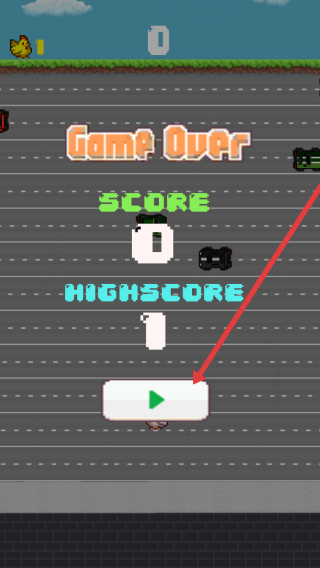 3、在游戏失败后,屏幕显示Game-Over后,可以点击播放按钮重新挑战,尝试突破分数纪录。