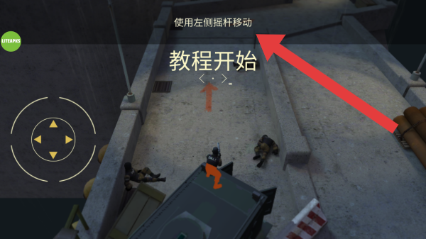 1、画面呈现了教程的指引的开始,玩家需要根据提示:使用左侧摇杆进行移动,观察四周的场景。