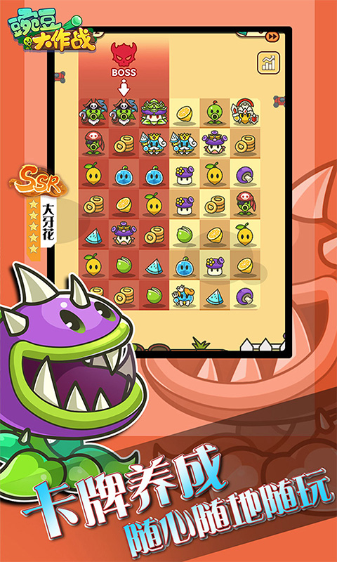 2、合成系统需要观察植物特性,通过合理进化提升战力,不同豌豆变种拥有独特技能,根据僵尸类型选择最佳进化路线。