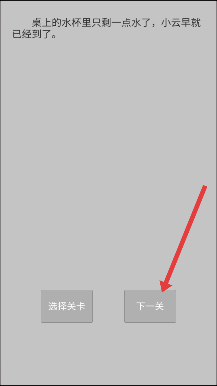 2、推理出水杯剩水线索后,就可以进入下一关的问题,点击下一关的按钮,推进关卡至下一阶段。