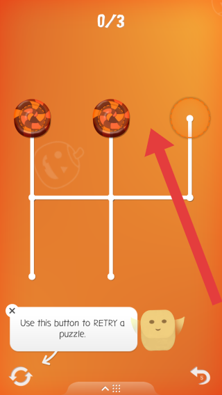 3、后续关卡0/3都同理,利用可以用RETRY的按钮重置,调整糖果滑动的路径,完成所有模具填充。