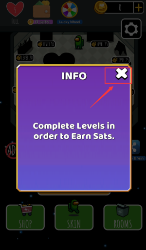 3、点击红框叉号按钮,关闭当前游戏提示窗口。