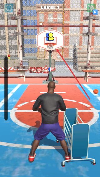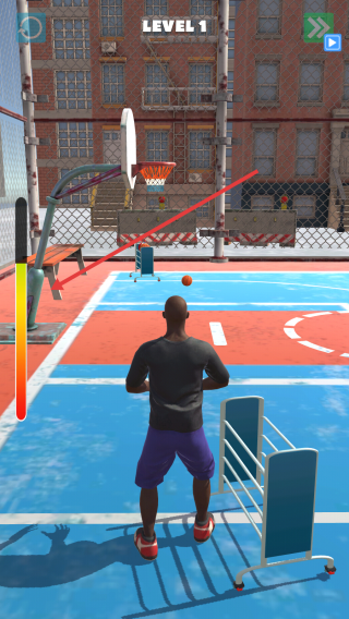 3、让篮球精准落入篮筐带多人标识的目标区域,完成LEVEL1闯关,重复挑战优化蓄力节奏与瞄准角度,积累完美命中数解锁新关卡。