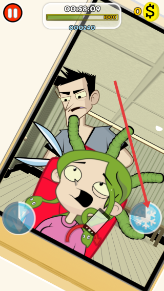 2、注意上方绿色的进度条和倒计时,快速的清理头上的异物,避免顾客不满,查看顾客表情变化。