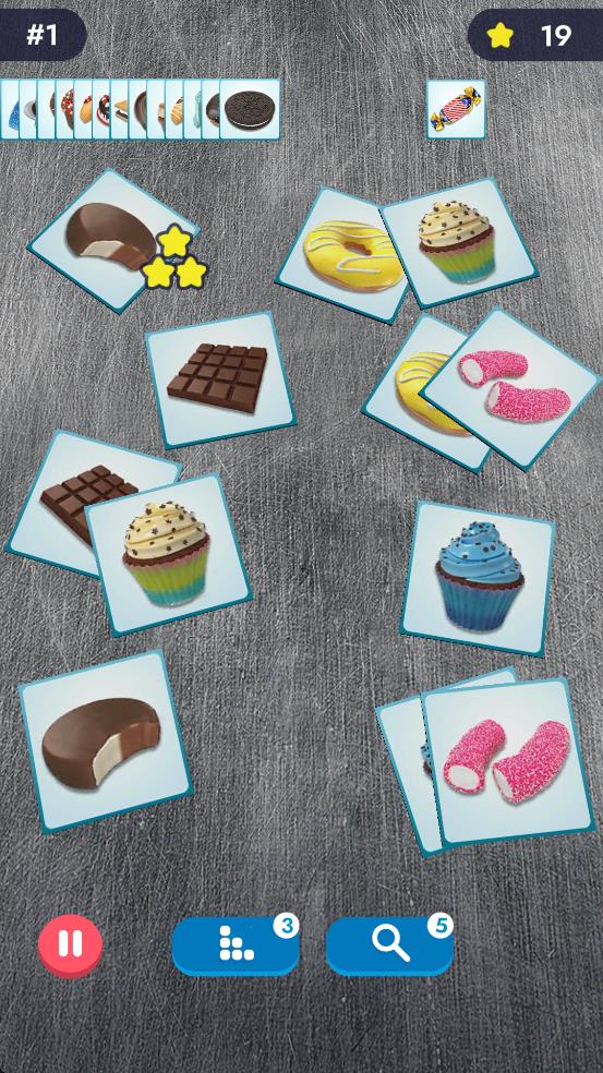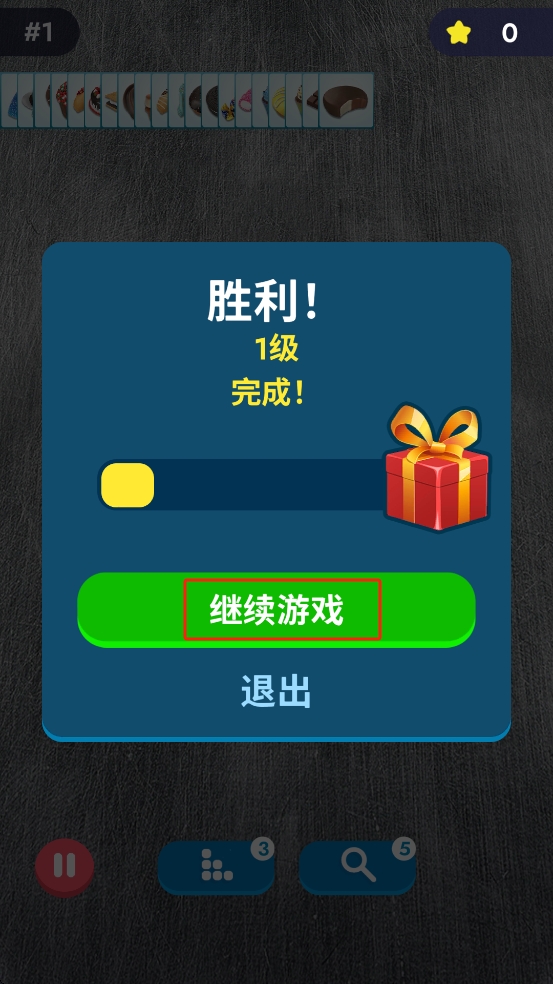 3、完成当前关卡后,点击继续游戏按钮即可进入下一关,挑战更多甜品配对,积累星星、奖励,提升游戏进度。