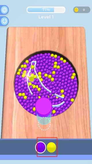 2、投放时,留意轨道路径,让小球精准填充对应颜色区域,逐步完成圆环填充进度,达到关卡要求。