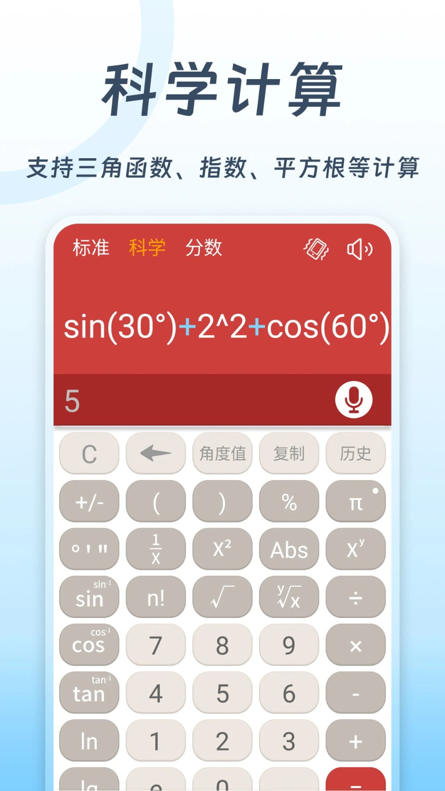 全民计算器app作为一款全新的手机计算神器。全民计算器2025手游不仅具备基本的加减乘除功能,还支持科学计算、历史记录查看、大写金额转换等多种实用功能,并且软件还配备了智能语音识别技术,主打一个能够满足用户们日常的多样化计算需求。