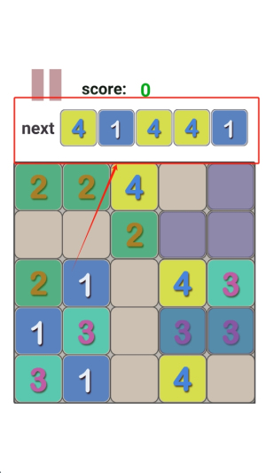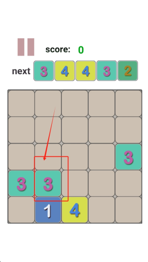 1、点击格子移动:进入游戏,点击灰色格子,将相同数字向一起移动,熟悉移动规则,为数字累加做准备,开启消除。