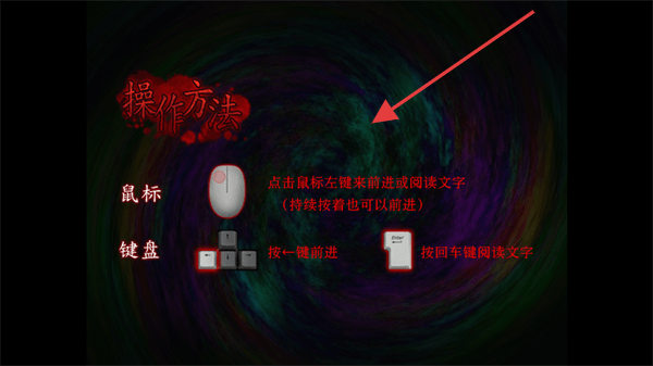 2、到操作说明界面,先看清楚鼠标和键盘咋用,记住鼠标左键点一下或一直按着能前进读文字,键盘按左键也能前进,回车读文字,学会操作,就能在游戏里顺畅移动推进剧情啦。