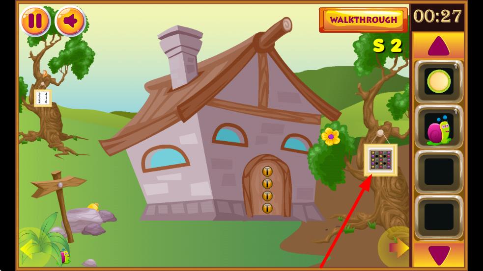 3、进入S2关卡,依据箭头,点击树上的彩色方块,结合收集的道具,解开谜题,推进魔术师逃离流程。