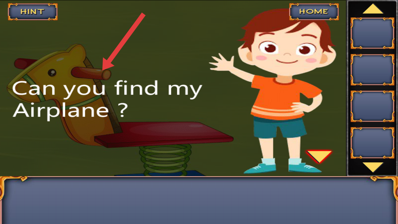 1、进入逃脱的场景后,需要先和小男孩进行对话,对话完毕后明确当前的任务,帮助小男孩找到他的飞机。
