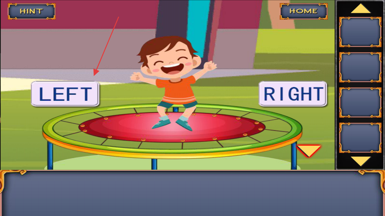 2、在附近仔细探寻,发现蹦床的场景,可以点击箭头提示侧的LEFT等按钮,与小男孩进行玩耍。