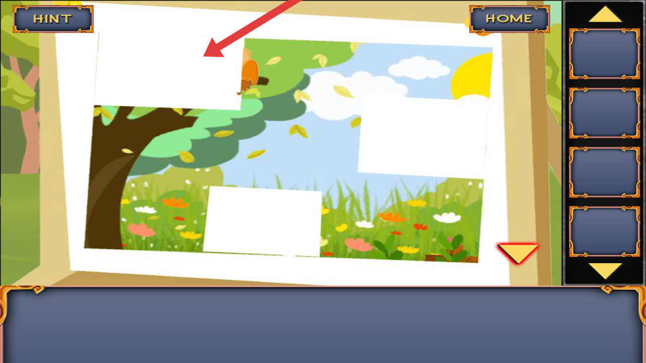 3、搜寻的过程中,发现一幅画少了三块空白拼图块,需要找到对应图案填补,完成最后的画面拼接。