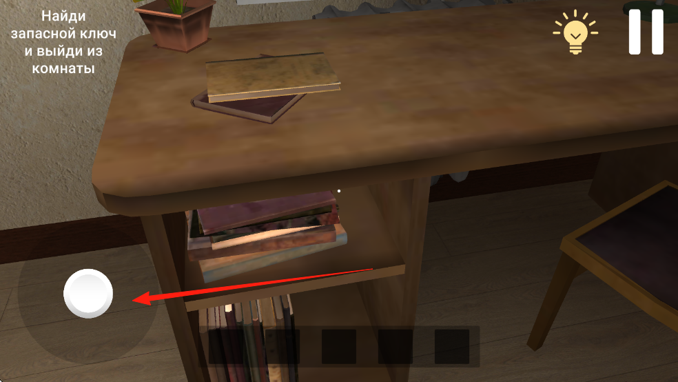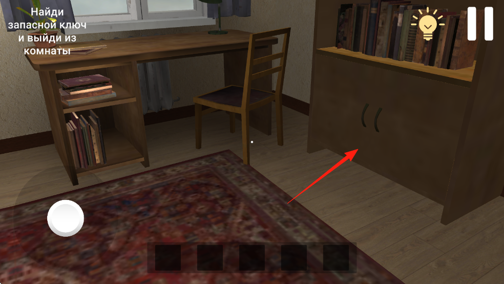 1、进入房间、查看右侧书架抽屉、寻找【备用钥匙】、找到后尝试离开房间。