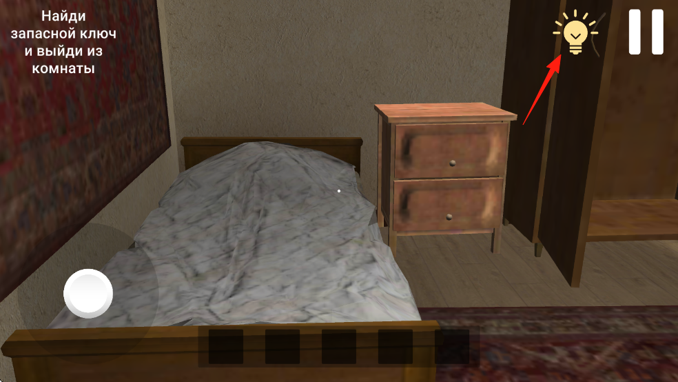 3、探索卧室区域、查看衣柜等家具、找【备用钥匙】、拿到后离开房间。
