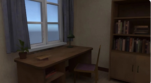 2、检查书桌下层、翻看书本夹层、搜寻钥匙线索、找到后准备逃离房间。