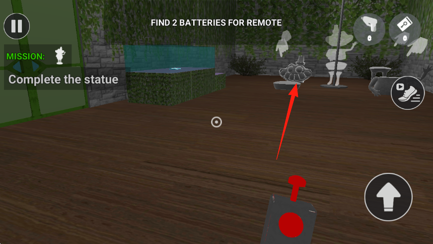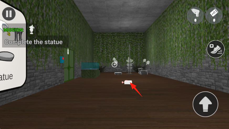 1、在绿植房间,收集地上物品,按Completethestatue任务,寻找雕像部件。