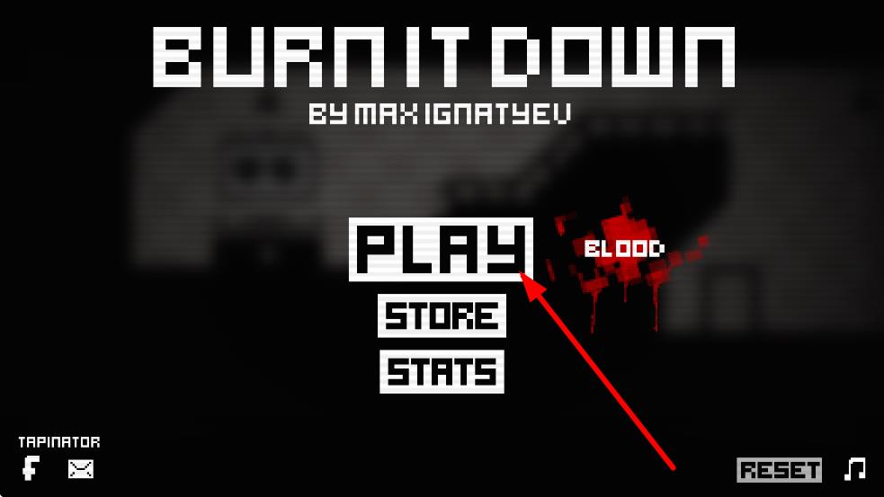 1、点击PLAY的按钮,开始BURN IT DOWN游戏,进入像素风格的冒险场景,准备完成关卡任务。