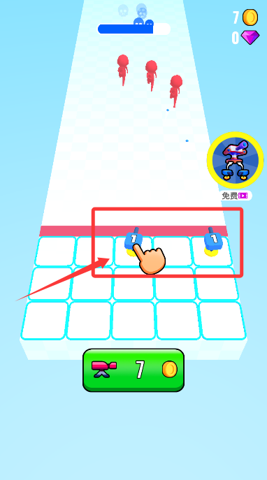 1、开局在跑道初始位置,轻触启动键消耗金币建造首座防御塔。