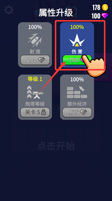 4、在强化界面投入紫钻石,选择攻击属性可以提升炮塔杀伤力。